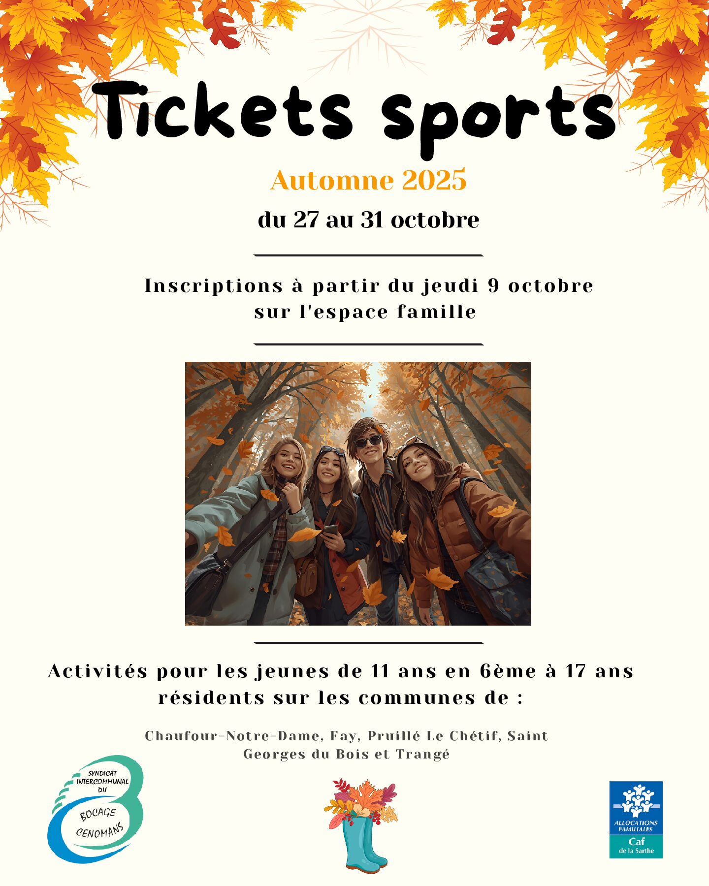 Ouverture des inscriptions des tickets de sports automne 2025.